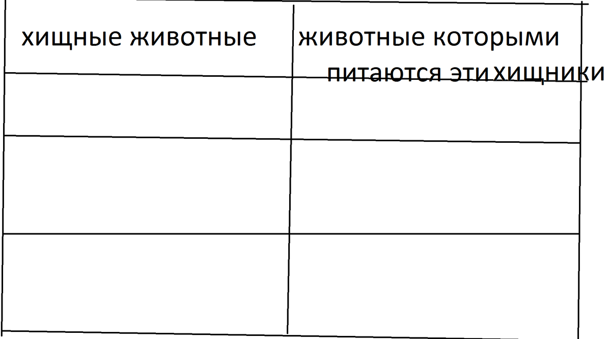 из перечня выбери сначала названия тех животных,которые,на твой взгляд,являются хищниками.запиши их в левую колону. в правую колону выпиши из числа оставшихся названия тех животных, которыми питаются каждый из хищников.