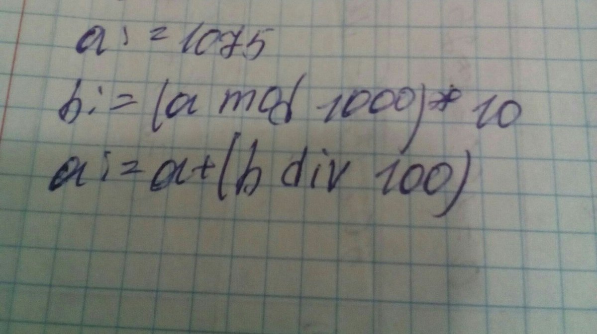 a = a+(b div 100) = 1075+(750 div 100) = 1075+7 = 1082