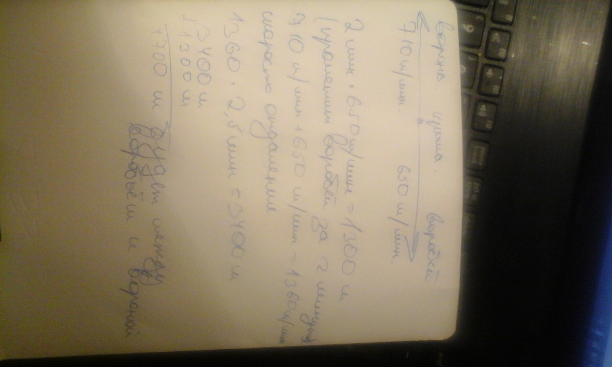 Воробей и Ворона полетели с крыши в разных направлениях ворона летела со скоростью 710 метров в минуту а Воробей 650 метров минуту какое расстояние между Воробьем и вороны будет через 2 минуты 30 секунд если воробей вылетит на 2 минут раньше