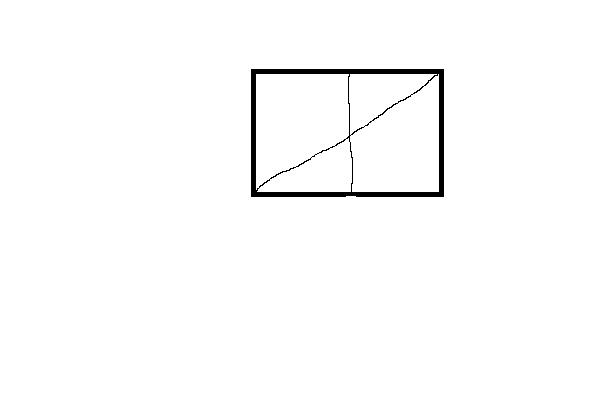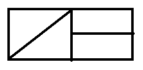 Сначала делишь прямоугольник на две равный части, потом одну часть делишь по диагонали, а вторую по горизонтали и все)
