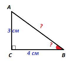 Дан треугольник ABC, известно, что угол C — прямой, CA= 3 см, CB=4 см.