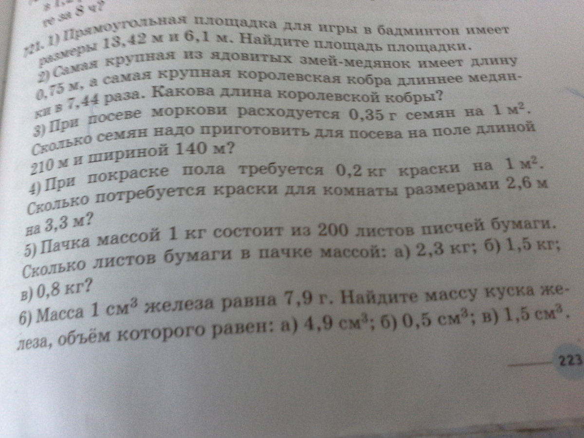 1) Прямоугольная площадка для игры в бадминтон имеет размеры 13,42 м. и 6,1 м. Найдите площадь площадки.