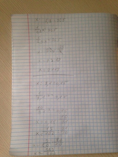 Помогите решить пожалуйста)))) Решите уравнения: х:5,8=365; х:8,1=0,15; Х:7,4=2,3; х:0,22=4,9 Тема умножение и деления десятичных дробей ! Помогите