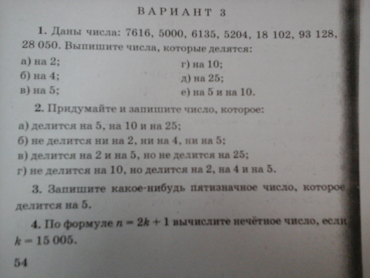 1.задание 7616 делиться на два будет 3808 а так же на 4 будет 1904,5000 делится на 2 будет 2500 а так же на 4 будет 1250 а так же на 5 естественно будет 1000 а так же на 25 будет 2000 а так же на 10 будет 500(это было первое задние я все делать не буду что то же сам(а) должен(а) сделать,не знаешь признаков делимости хотя должн(а) был(а) их выучить ну так вот ч о том если признаков не знаешь просто дели хоть делить то ты умеешь?