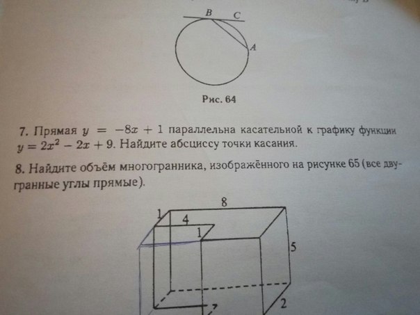 7. y'=4x-2 это тангенс угла наклона касательной, который паралеллен y=-8x+1, т.е. 4x-2=-8, x=-3/2