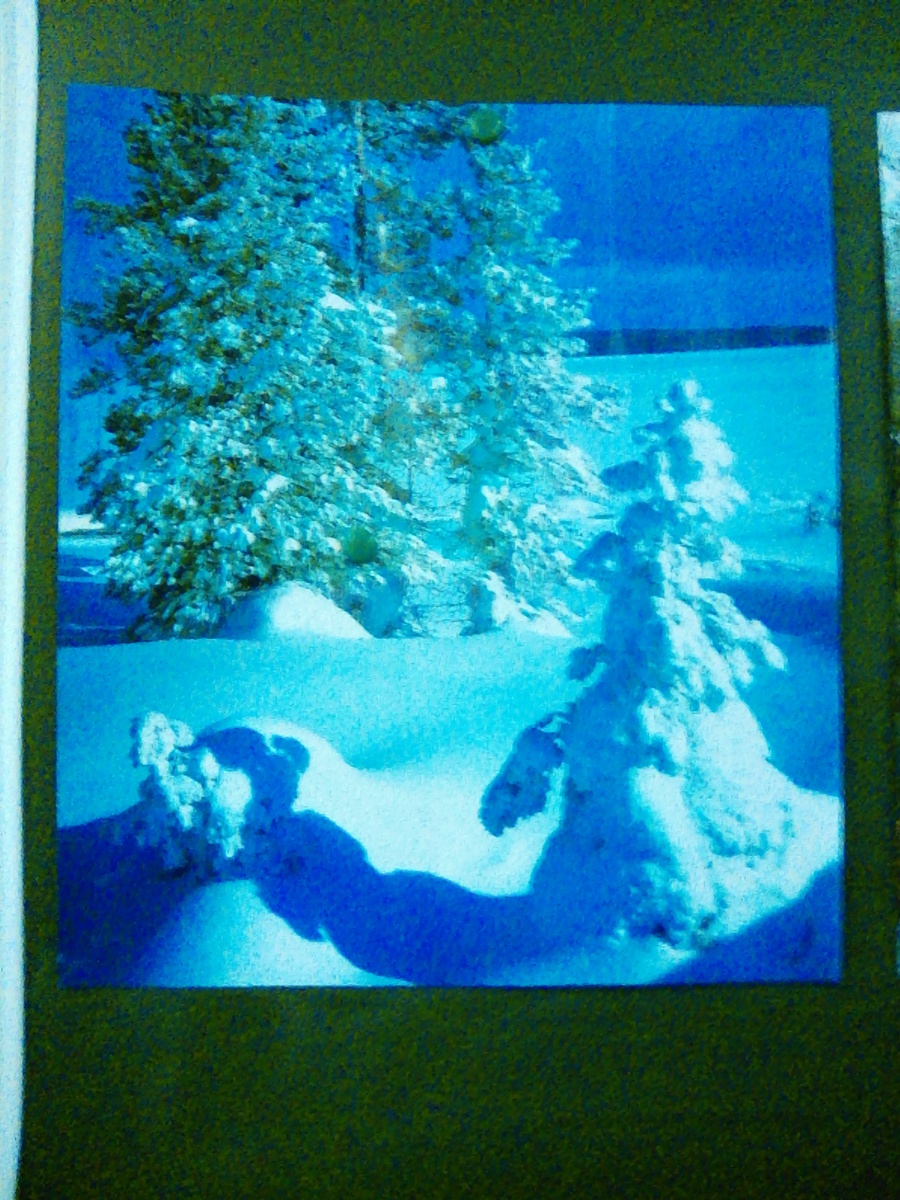 Winter beauty! Everything sweeps white fluffy snegom.El all dressed this krasotoy.Na branches covered with snow, feeling as if she was white without snega.Sleva one covered with spruce, it is almost not visible.In the distance are still derevya.Na they are seen green glade listya.szadi proceeds mainly.The picture I liked because it was made with a soul!