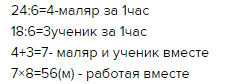 Маляр за 6 ч работы может покрасить 24 м2 стены, а его ученик - 18 м2. Какую площадь они смогут покрасить за 8 ч, работая вместе? помогите прошу вас!! и