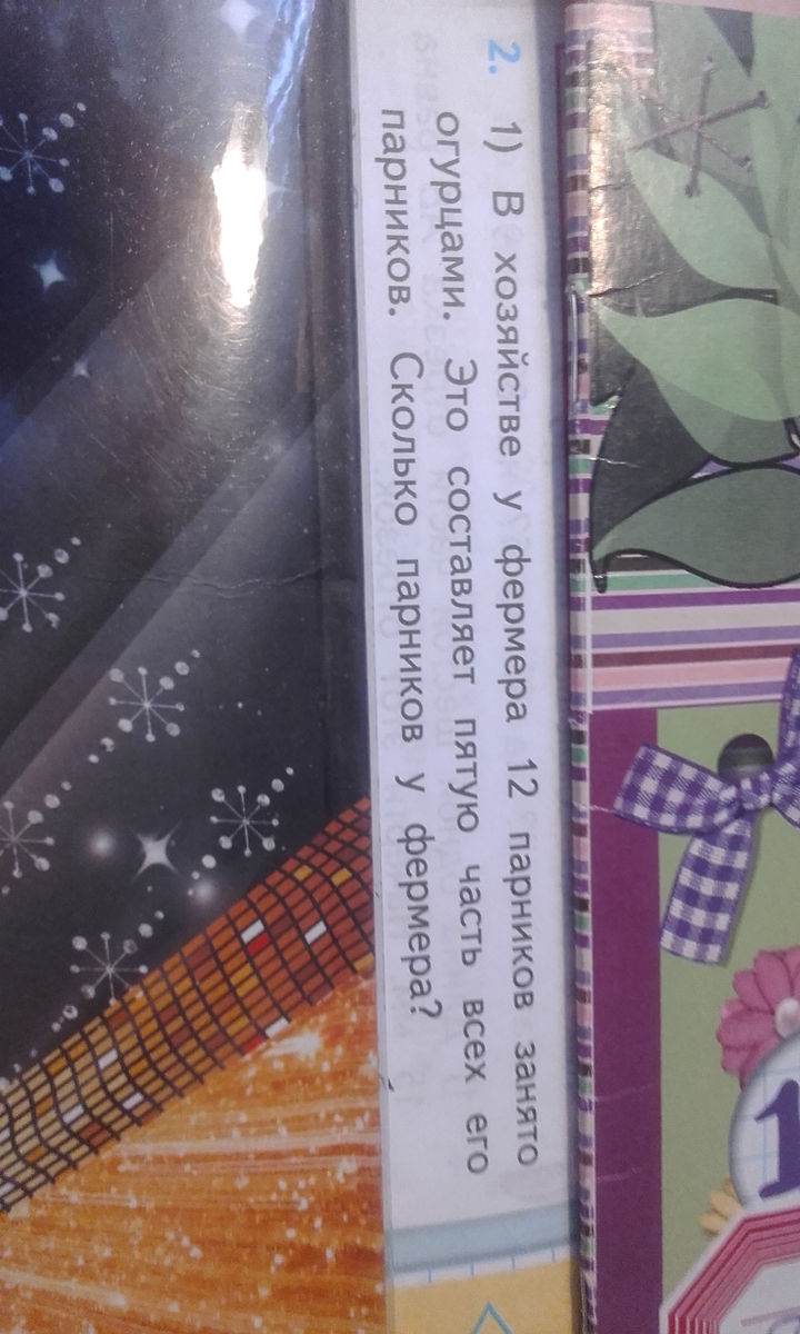 12 парников это 1/5 часть от всех парников.значит все парники это12*5=60 парников всго