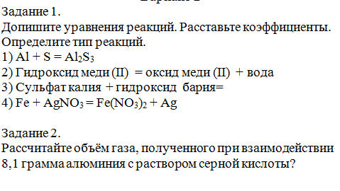 1. 1) 2Al+3S=Al2S3 - реакция сложения