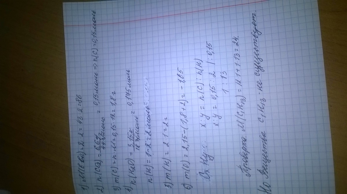 вещества С1Н13 не существует! в проверке цифры должны совпадать с цифрами в 1 действии. в 6 действии мы проверяли наличие кислорода, а т.к. число получилось отрицательное, то это показатель того, что кислорода нет