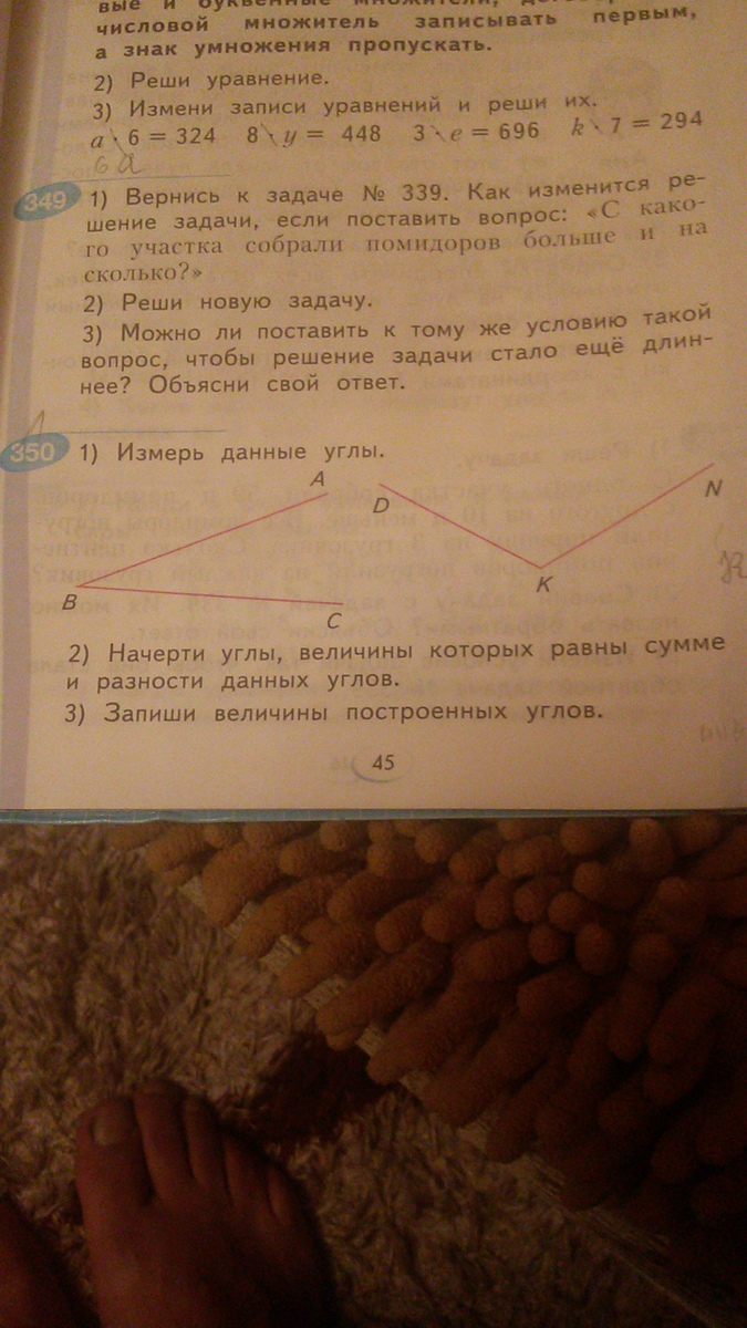 Возьми транспортир и измерей углы ,потом сложи их и вычти, и все!
