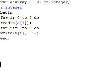 Разработать программу ввода и вывода элементов одномерного массива размером 10 элементов. При разработке программы использовать оператор цикла с параметром for.