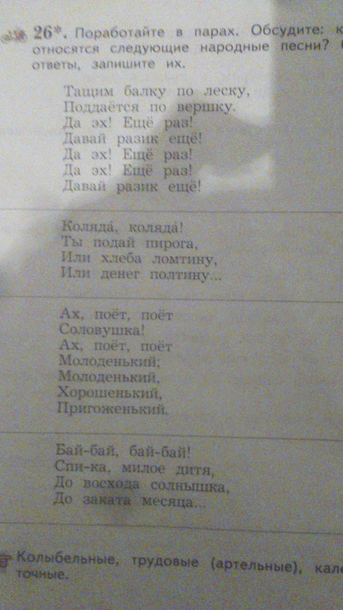 поработайте в парах обсудите к каким песням относятся следующие народные песни? объясните свои ответы запишите их
