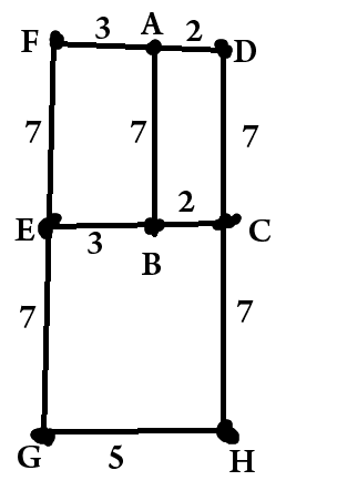 Отметьте в узлах клеток 8 точек А В С D E F G и H так,чтобы они были вершинами трех прямоугольников для которых верны следующие утверждения: