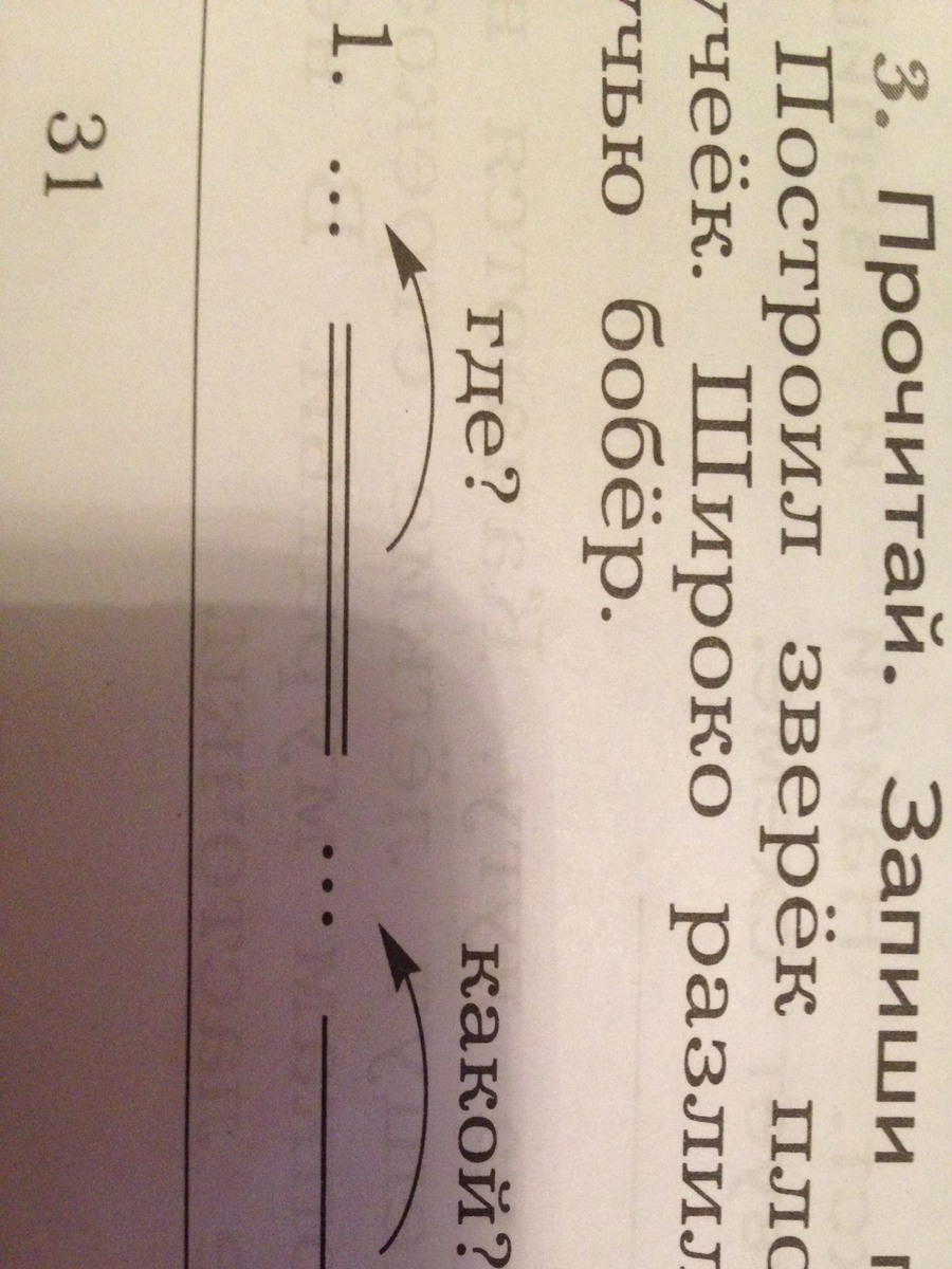 Запиши предложения в порядке схем. Построил зверёк плотину. В лесу протекал тихий ручеёк. Широко разлился бобровый пруд. Пришёл к ручью бобёр.