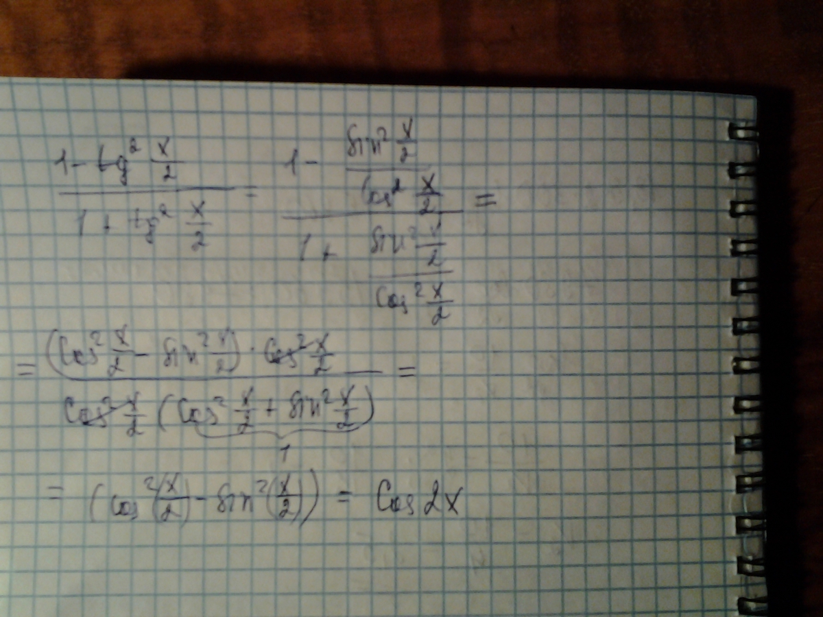 Применено определение тангенса, основное тригонометрическое тождество, формула косинуса двойного угла