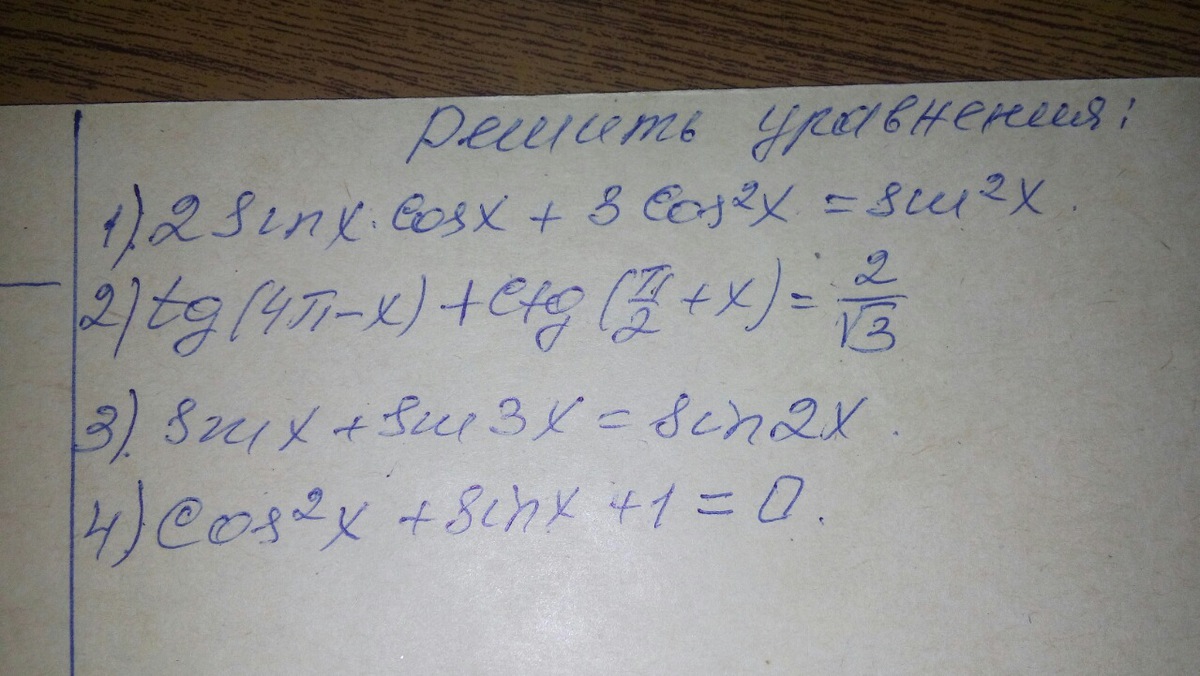 2) tg(4π-x) +ctg(π/2 +x) = 2/√3
