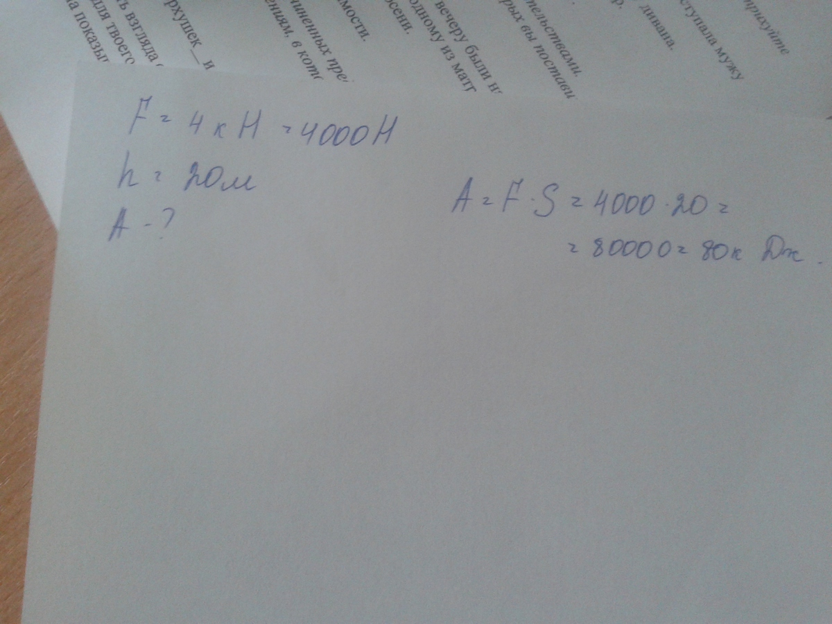 Сила упругости каната при подъеме лифта F=4,0кН. Какую работу совершает сила упругости при подъеме лифта на высату h=20м.