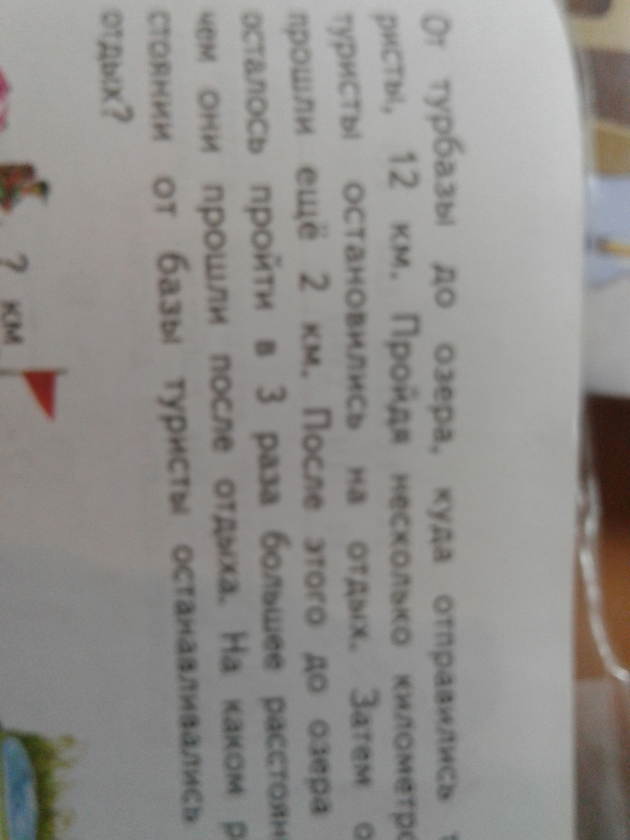3) 12 - 8 = 4 (км) - прошли туристы до отдыха