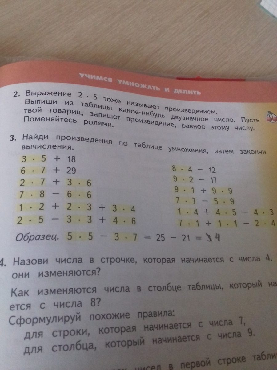 2 * 5 - 3 * 3 + 4 * 6 = 10 - 9 + 24 = 1 + 24 = 25