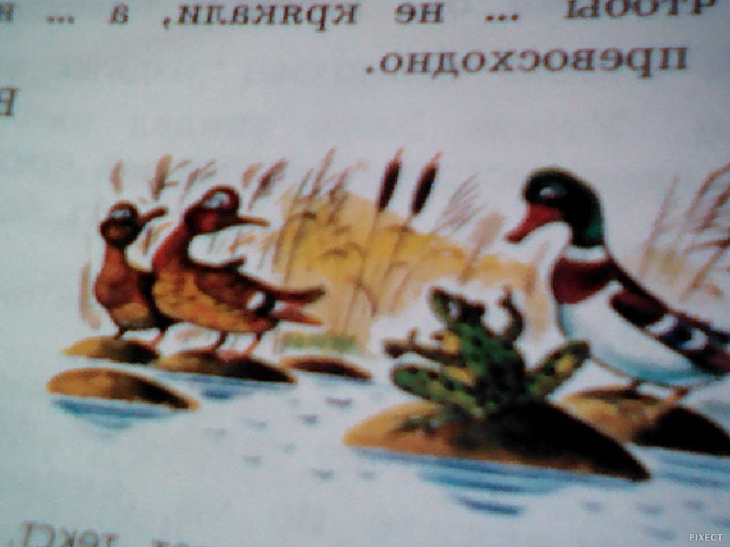 по берегу ходят уточки. они хотят поговорить с лягушкой.уточки внимательно слушают лягушку. лягушка рассказывает информацию. когда лягушка рассказала важную информацию,