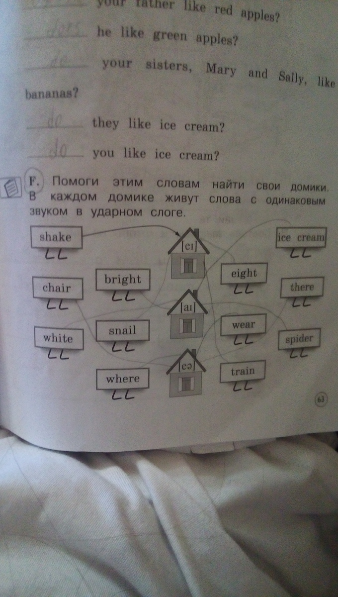 помоги этим словам найти свои домики в каждом домике живут слова с одинаковым звуком в ударном слоге