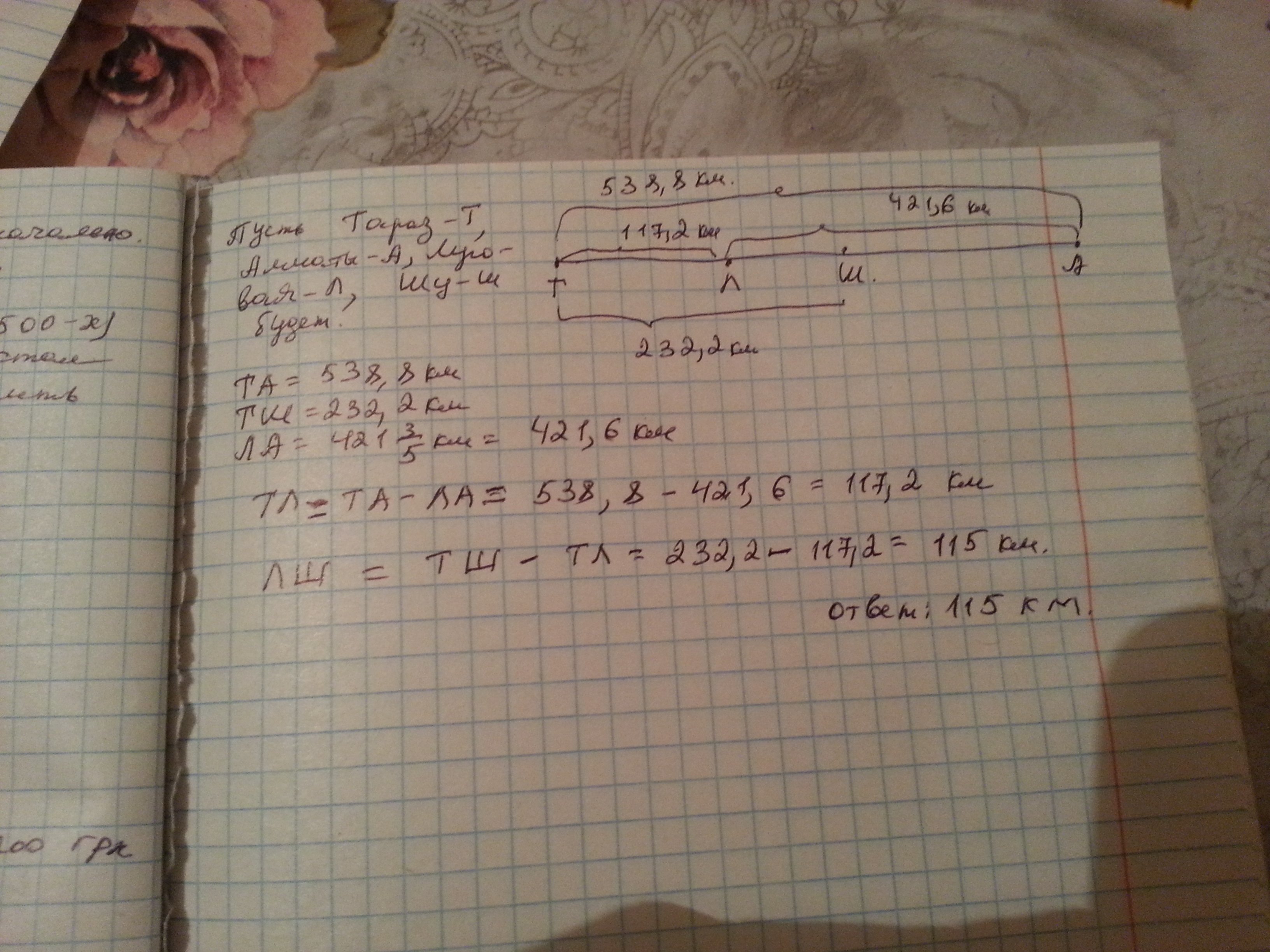 расстояние от станции Тараз до станции Алматы 538,8 км расстояние от станции Тараз до станции Шу 232,2 км а от станции Луговая до станции Алматы 421 3/5 км найдите расстояние от станции Луговая до станции Шу
