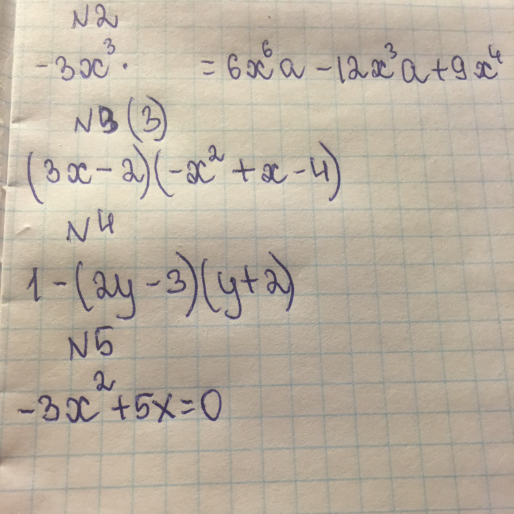 №2 -3х³(-2х³а + 4а -3х) =6х⁶а -12х³а +9х⁴