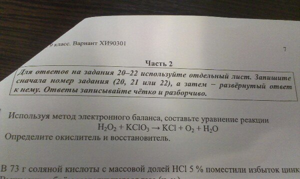 3H₂O₂⁻ + KCl⁺⁵O₃ = KCl⁻ + 3O₂⁰ + 3H₂O