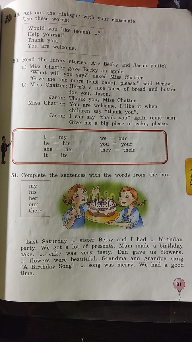 Becky isn't polite becouse he said one more when Miss Chatter was waiting thanks or please.But Jason is polite becouse he said please and thank you and was ready to said it again!