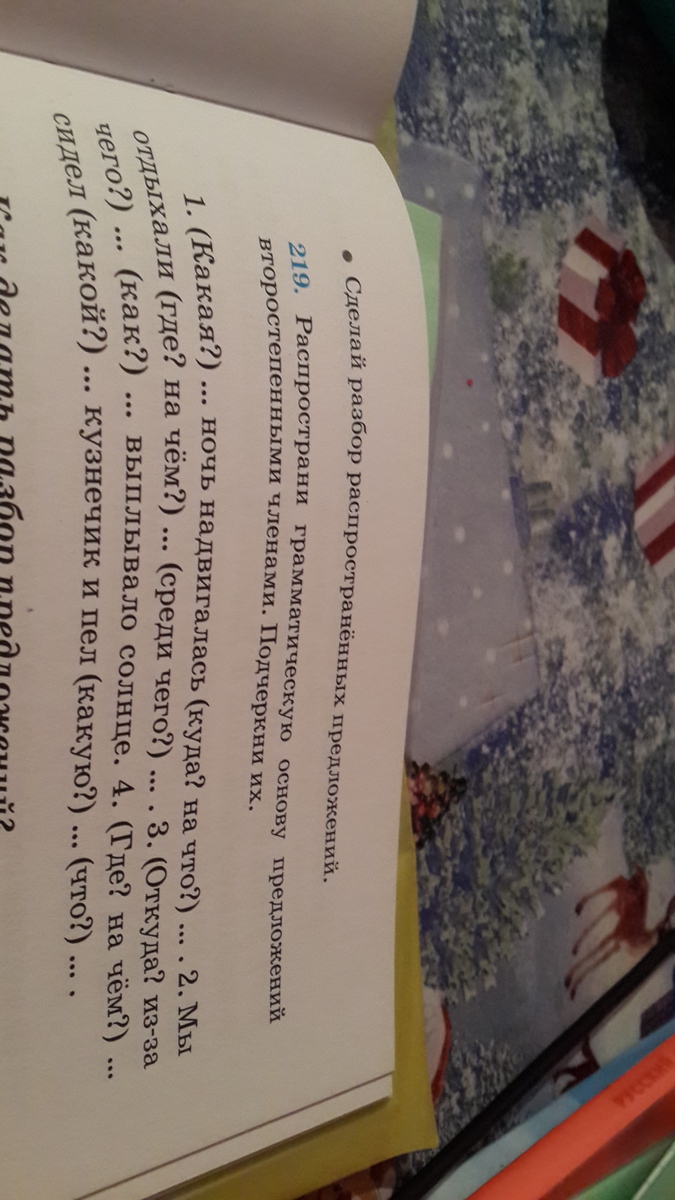 Темная ночь надвигалась на деревню.Мы отдыхали на поляне среди деревьев.Из-за горизонта медленно выплывалр солнце.На траве сидел зеленый кузнечик и пел веселую песню.