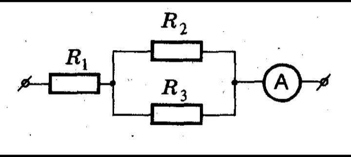 Найти силы тока в каждом резисторе, если R1 = 3 Oм, R2 = 2 Ом, R3 = 4 Ом, а амперметр показывает 6А. R2 и R3 соединены параллельно