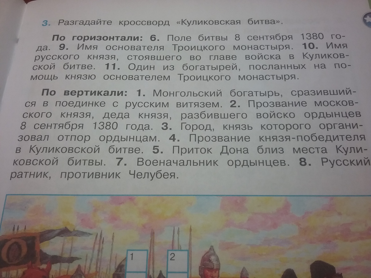 1) Челубей 2) калита 3) Москва 4) донским 5) непрядва 6) Куликово 7) Мамай 8) Пересвет 9) Сергей 10) Дмитрий 11) ослябя.