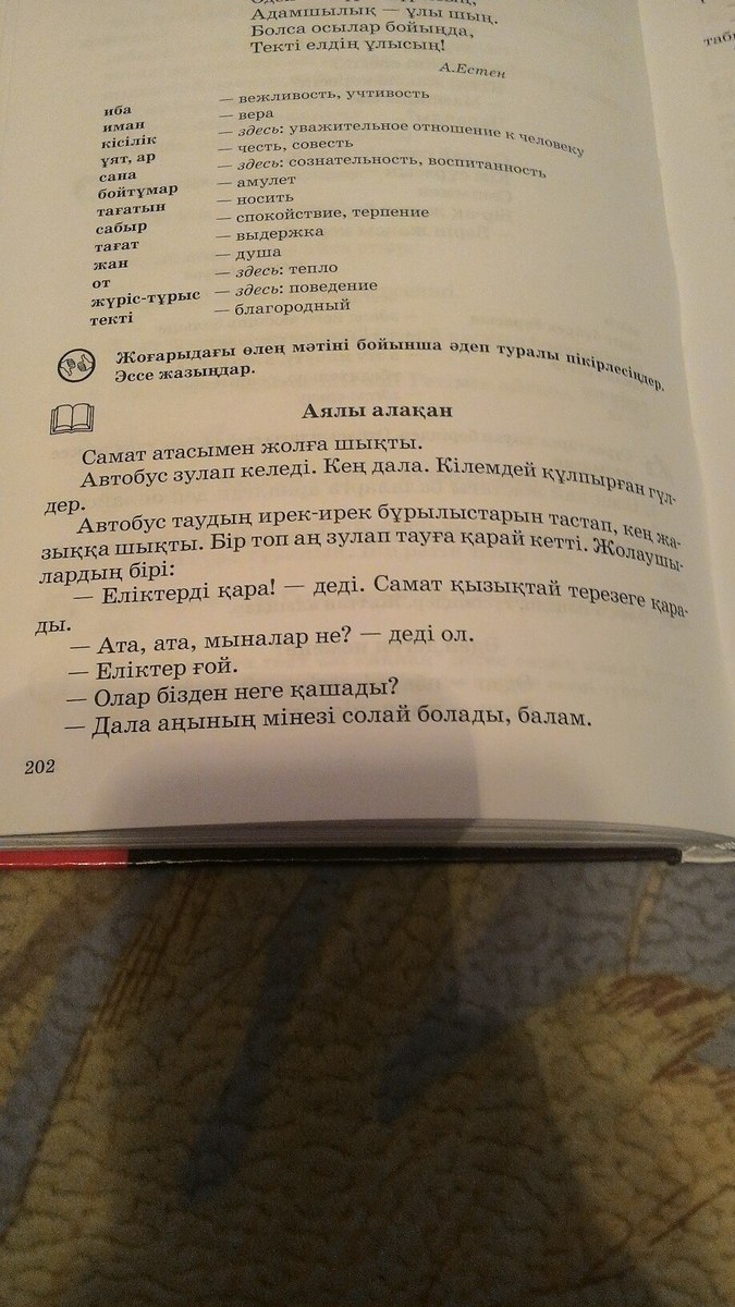 Самат выехал с дедушкой в дорогу.Автобус едет быстро.Степь широкая.Цветы переливаются всеми красками как ковер.Автобус проехав горные извилины выехал на просторную равнину.Стадо косулей быстро промчалось к горам.Один из путников крикнул;