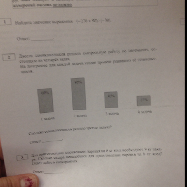 двести семиклассников решали контрольную работу по математике, состоящую из четырех задач.