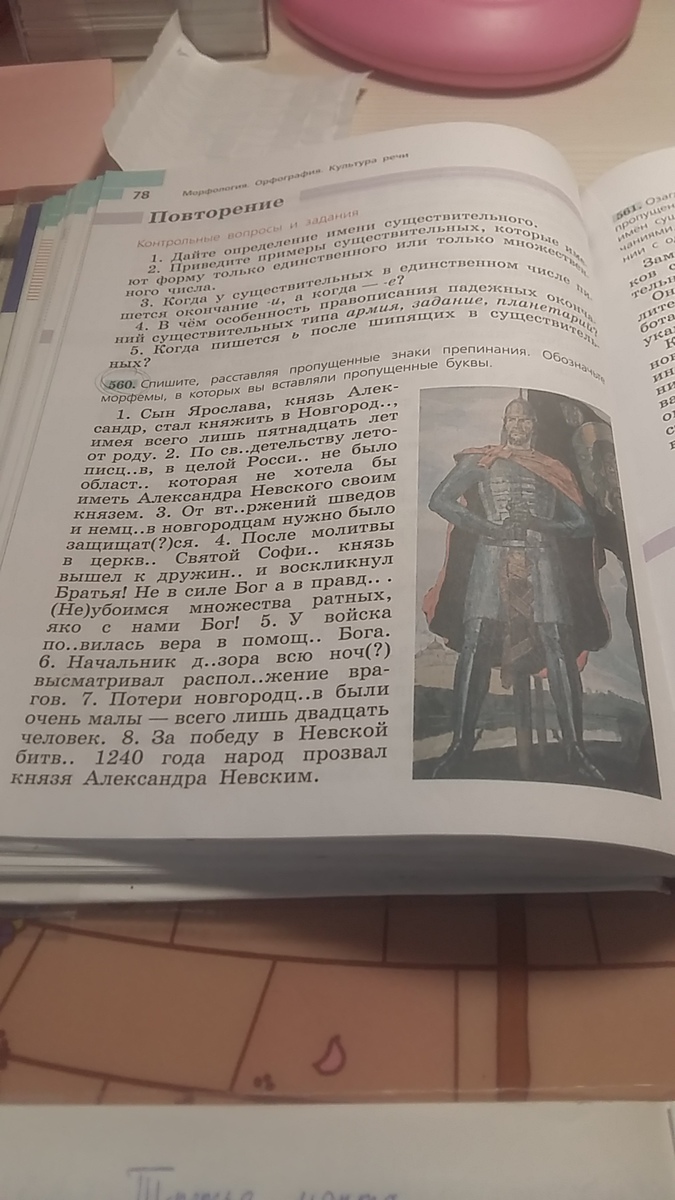 Сын Ярослава,князь Александр,стал княжить в Новгороде (окончание е П.п),имея всего лишь пятнадцать лет от роду. По свидетельству(корень свидетель) летописцев (окончание ев Р.п),в целой России ( окончание и) не было области (окончание и ), которая не хотела бы иметь Александра Невского своим князем. От вторжений (подчеркнуть букву о и проверить словом вторглись) шведов и немцев (окончание ев Р.п) новгородцам нужно было защищаться (суффикс ать). После молитвы в церкви (окончание и) Святой Софии (окончание и) князь вышел к дружине (окончание е ) и воскликнул:''Братья! Не в силе Бог,а в правде (окончание е). Не убоимся множество ратных,яко с нами Бог! У войска появилась ( корень явил и проверочное слово явка) вера в помощь Бога. Начальник дозора ( приставка до) всю ночь высматривал расположение (корень лож) врагов. Потери Новгородцев (окончание ев) были очень малы-всего лишь двадцать человек. За победу в Невской битве (окончание е ) 1240 года народ прозвал Александра Невским.