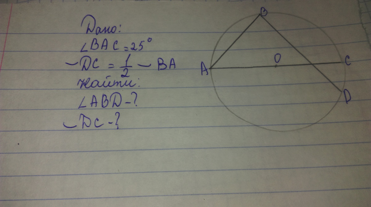 Дуга ВС=12.5, т.к впис., угол в 2 раза меньше дуги.