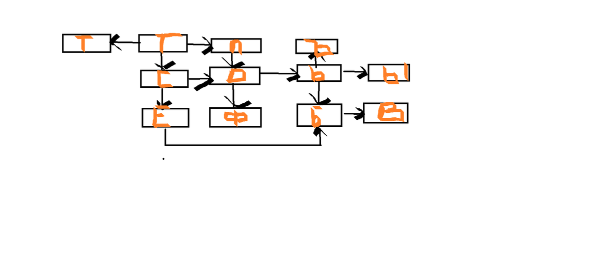В вершинах графа записаны буквы. Каждое реброребросо стрелкой означает: к букве добавляется одна чёрточка и получается новая буква.