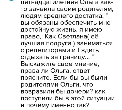 Я считаю что Ольга не права. В кодексе Российской федерации есть закон что каждый гражданин россии имеет право на отдых.Но не обязательно за границей. Репетиторы не важны ведь они только преподносят правила в понятной форме что может сделать ольга и сама.