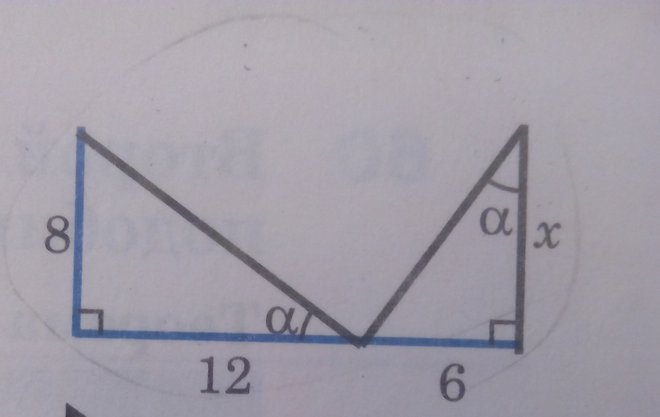 треугольники подобны составим отношение 8:6=12:х⇒8х=6*12⇒8х=72⇒х=72:8⇒х=9