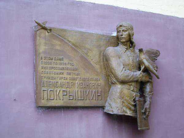 2. Мемориальная плита- установлена кв Краснодаре ( улица Седина, дом 2) на доме, в котором в 1936-1838 годах жил А.И Покрышкин. Открыта 9 мая 1985 года. Скульптор А.А Аполлонов.