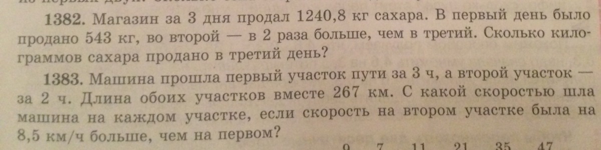 Магазин за 3 дня продал 1240,8 кг сахара.В первый день было продано 543кг,во второй-в 2 раза больше, чем в третий.Сколько кг сахара продано в третий день