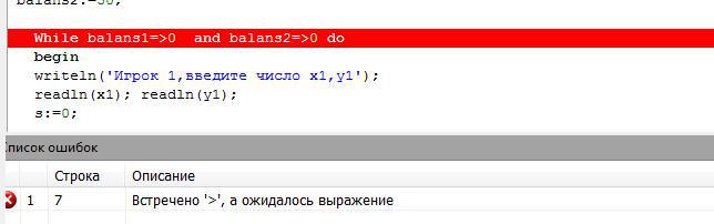 Паскаль. Как написать программу для 2-х игроков. Баланс-это сумма их очков за игру.