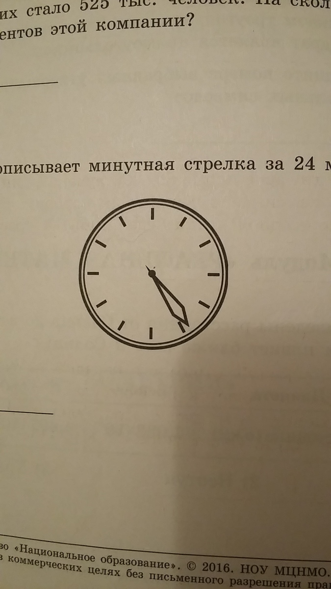 какой угол (в градусах )описывает минутная стрелка за 24 минуты?
