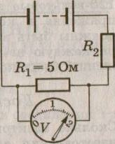 Какова сила тока в проводнике R2(см рис)? Чему равно напряжение на этом проводнике, если его сопротивление 2 Ом