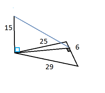 Help Стороны треугольника равны 6, 25, 29 см, из вершины меньшего угла проведен перпендикуляр к его плоскости = 15 см. Найдите расстояние от конца этого