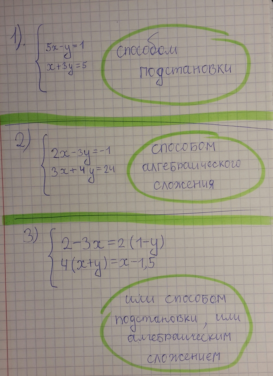 Ничего сложного особо в этом нет. В первом случае мы из более простого уравнения выражаем что-то и поставляем в первое; т.к. уравнения просты и незатейливы, выразим… x, потому что там нет минуса.) Итого у нас получится: