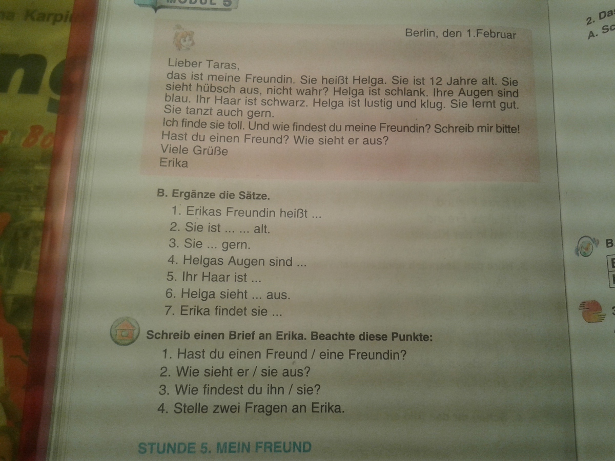 4. Was macht deine Freundin in den Ferien? Hat deine Freundin Lieblingstier?