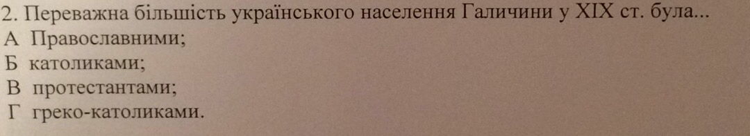 Пере-важна д ’ А Православию Б католиками В протестантами - Г