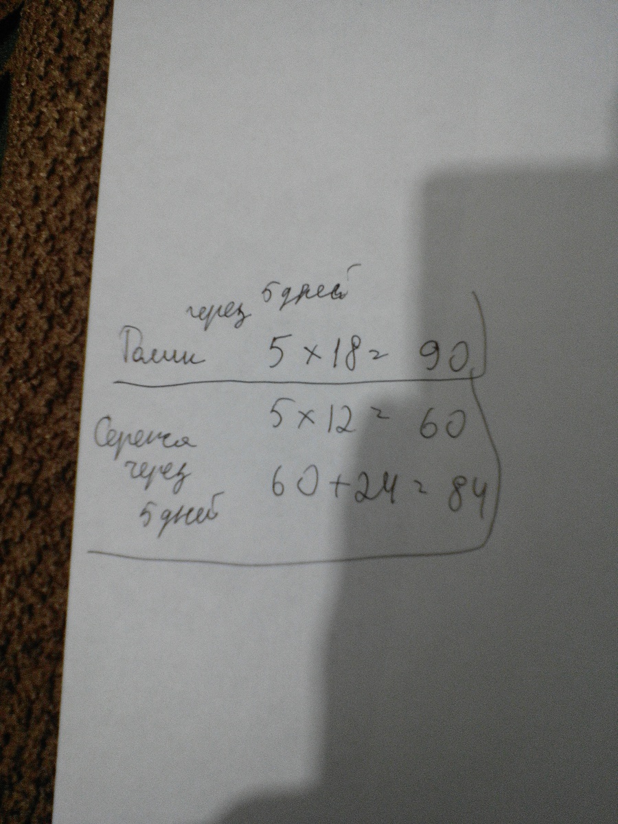 4) 90 больше 84, значит Толя догонит Серёжу.